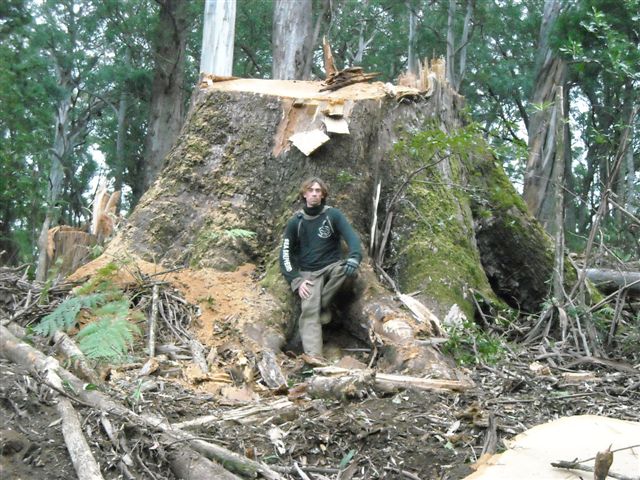 Fresh stump of a 500 year old-growth Eucalytus regnans,